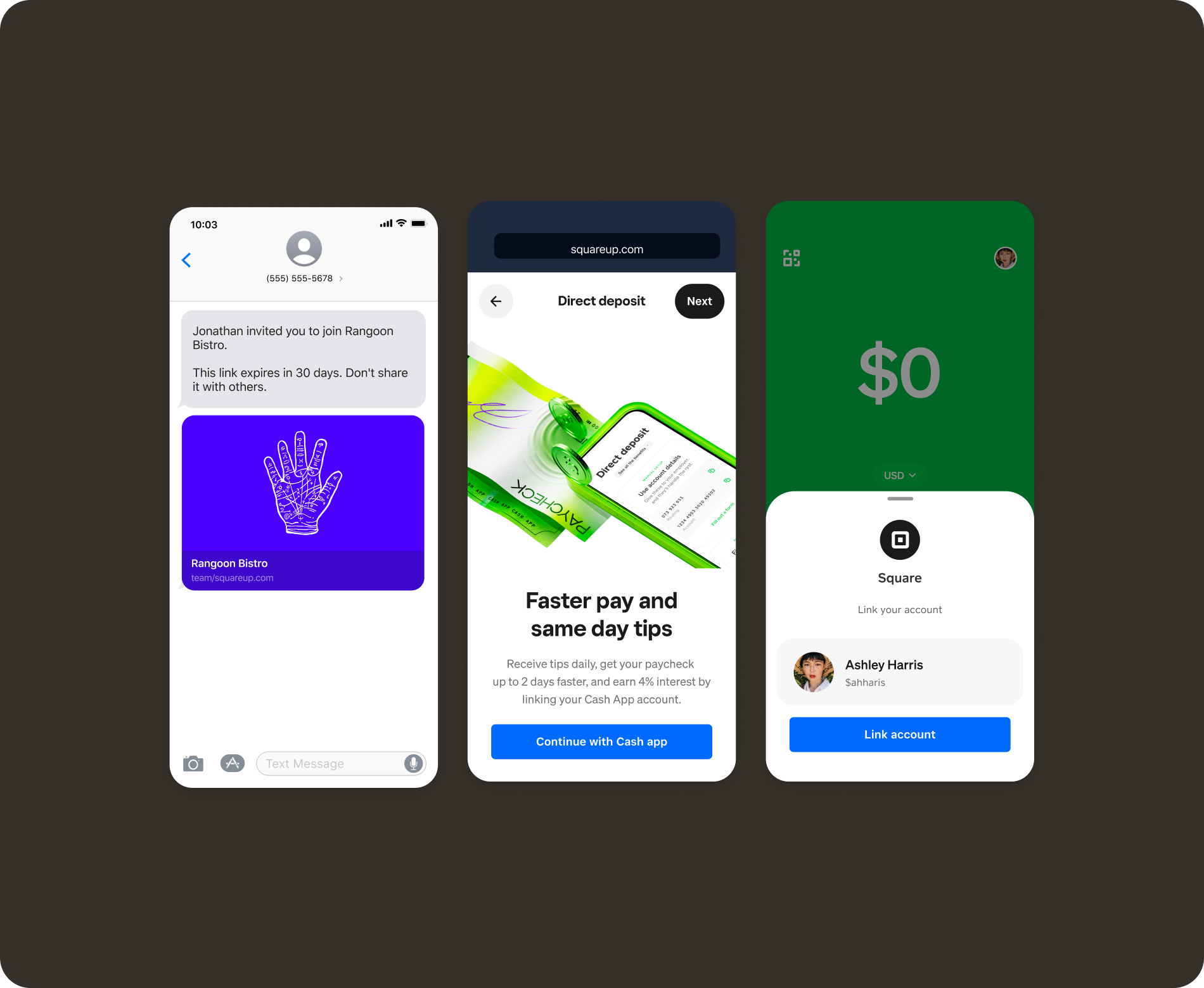 To make onboarding effortless, we launched an integrated linking flow for employees to connect their Cash App accounts directly in the Team App, and enabled Square Balance support to scale beyond sellers with Square Checking.